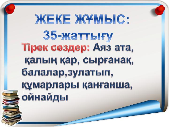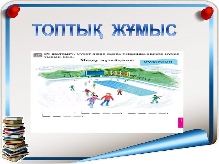 Ақ көңілді жүрекпен Ақ ниетті жүрекпен Амандасып алайық Қонақтарға ізетпен Ана тілі-біздің туған анамыз Сабақтардан кілең бестік аламыз. Шаршамаймыз талмаймыз Тек биікке самғаймыз