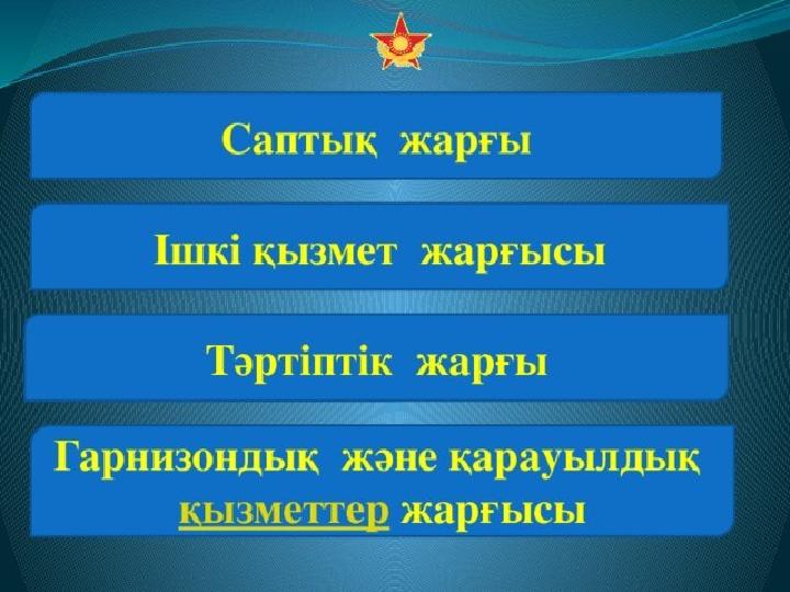 ҚРҚК басқа әскерлер және әскери құрылымдарының жалпыәскери жарғылары «Білім-Инновация» лицейі АӘТД пәнінің оқытушы-ұйымдастырушысы Байсалбаев Дархан Абдуллаұлы