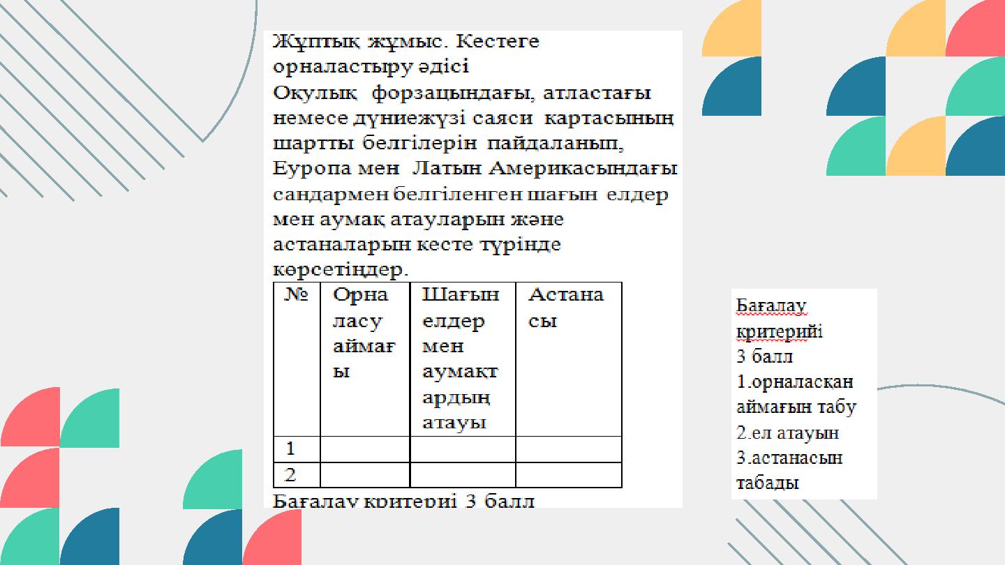 САБАҚТЫҢ МАҚСАТЫ: БІЛІМ АЛУШЫЛАР САЯСИ КАРТАНЫҢ БАСТЫ НЫСАНДАРЫН СИПАТТАЙДЫ