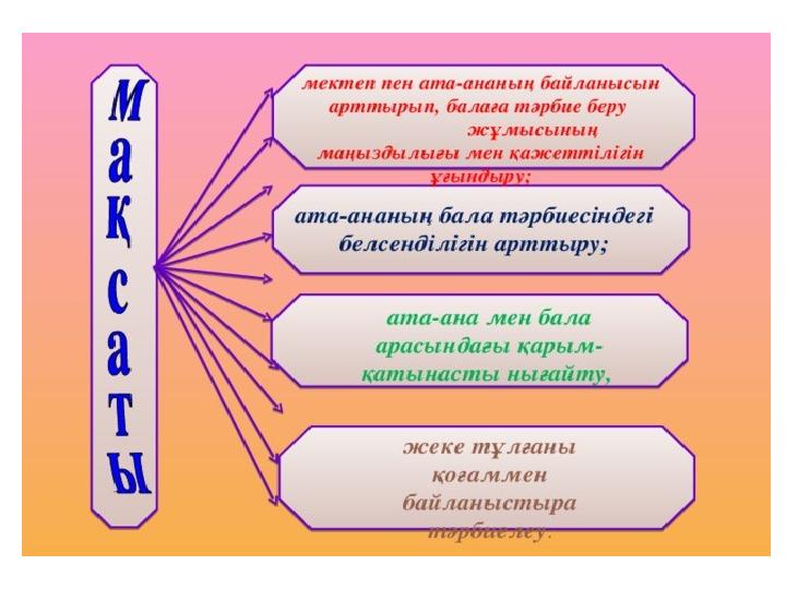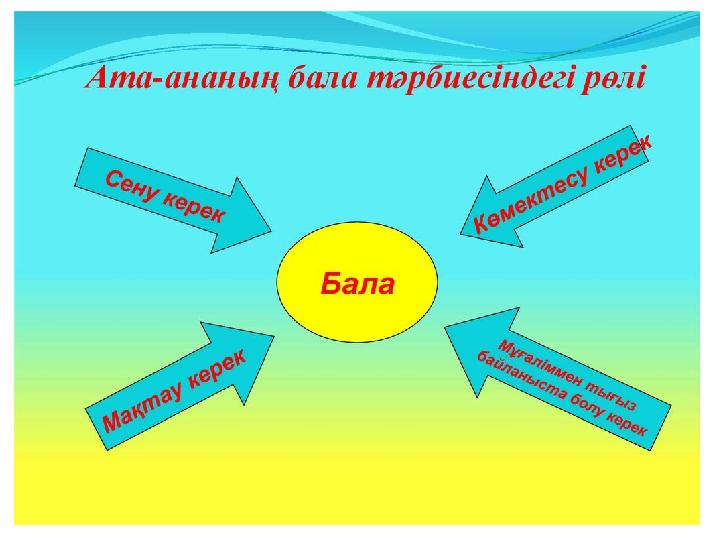 «Тек қана ата-аналармен бірге, жалпы күш-жігерді біріктіру арқасында мұғалімдер балаларға үлкен адамдық бағыт беруі мүмкін.» В.А.Сухомлинский