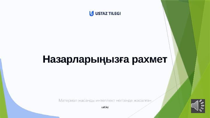 Қорытынды Атамұра - біздің өткеніміз бен болашағымызды байланыстыратын көпір. Ол бізге ұлттық мәдениетімізді сақтауға, дамытуға және келешек ұрпаққа жеткізуге көмектеседі. Атамұраны сақтау және насихаттау әрбір азаматтың міндеті болып табылады. Бұл біздің болашағымыздың кепілі.