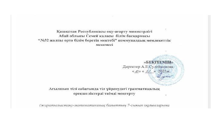 Тақырыбы: “Ағылшын тілі сабағында тіл үйренудегі грамматикалық ерекшеліктерді тиімді меңгерту” (жаратылыстану-математикалық бағыттың 7-сынып оқушыларына арналған)