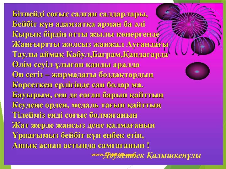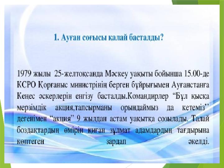 Ауғанның отты жалыны презентация тәрбие сағат