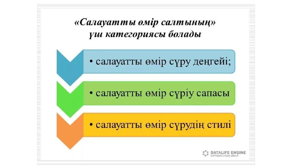 Салауатты өмір салты дегеніміз- денсаулықты нығайту мен сақтау, ағзаның дұрыс дамуын