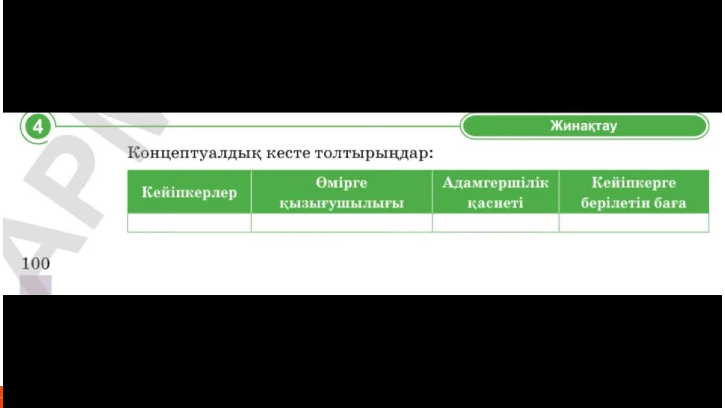 Шығармадан негізгі кейіпкерлердің бейнесін танытатын