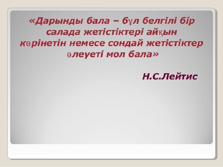 •«Еңсесін енді көтеріп келе жатқан біздің еліміз үшін дарынды ұрпақтың орны мүлде бөлек», - Н.Ә.Назарбаев. Қазақстан Республикасының 2030 жылға дейінгі стратегиялық даму бағдарламасында білім беруді инновацияландыруға сай икемдеу үшін білім беру жүйесін ақпараттындыру, жаңа талапқа сай дамыту талабы қойылып отыр. Осы талапқа сай бүгінгі таңда білім беруде жеке тұлғаны дамыту, дана және дара ойлай алатын дарынды баланы оқыту мен тәрбиелеу жолдарын айқындау қажеттігі айқын. Білім берушінің алдындағы басты назар аударатын негізгі міндеттердің бірі – дарынды балаларды анықтап, оларға адамгершілік қасиеттерді дарыту, шығармашылыққа үйрете отырып, терең біліммен қаруландыру.