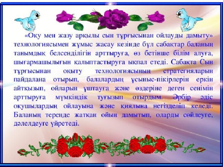 Бағыты: Дарынды оқушылармен жұмыс Тақырыбы: «Оқу мен жазу арқылы сын тұрғысынан ойлауды дамыту»