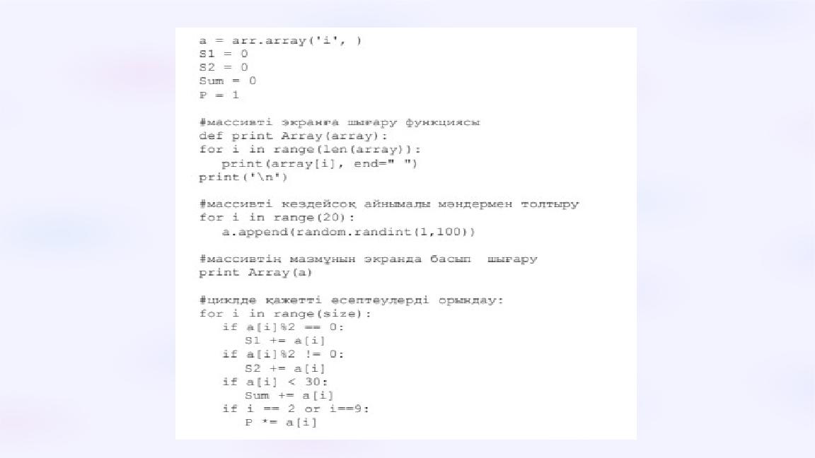 Оқу мақсаты: 9.3.3.1 Бір өлшемді массивтер пайдаланып Python