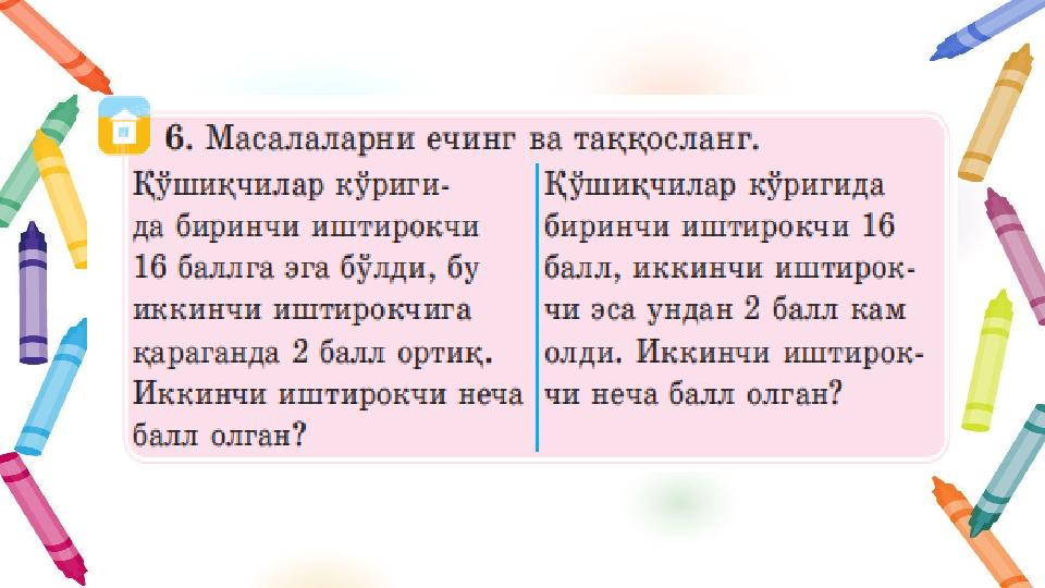 Қисқа таққослашга доир масалалар ечишни таҳлил