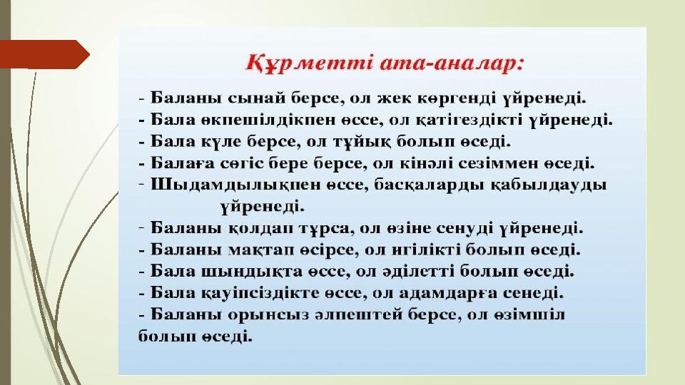 Отбасы тәрбиесіндегі ата-ананың тірбиелік ықпалын