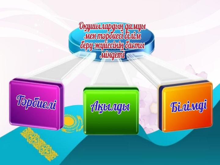 БІЛІМ БЕРУДІҢ БАСТЫ МАҚСАТЫ: Қазақстан Республикасының әлеуметтік, экономикалық және саяси өміріне белсенді қатысуға дайын, құзыретті тұлғаның қалыптасыуына ықпал ету