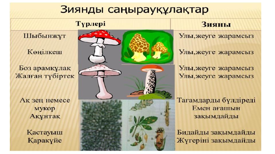 - Улы және жеуге жарамды саңырауқұлақтардың маңызын біледі.
