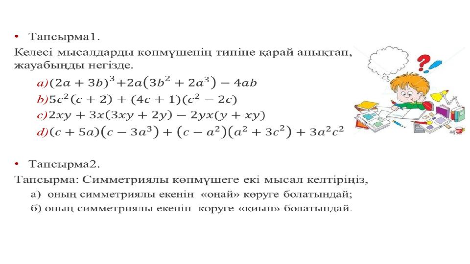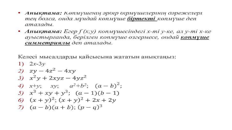 10.2.1.2 симметриялы және біртекті көпмүшелерді анықтай біледі; Оқу мақсаттары: