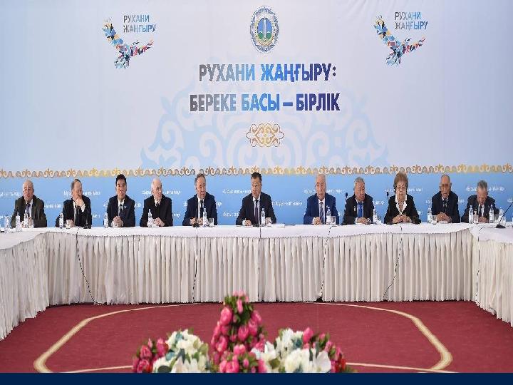 5. Қазақстанның революциялық емес, эволюциялық дамуы ХХ ғасыр қасіреттерін қаперімізге сақтап, одан сабақ алу және де дүрбелең туғызу экономикалық күйреуге алып келетінін қазіргі кезде болып жатқан әлемдік толқыныстарды мысалға келтірді. Ревалюциялық өзгеріс емес, эволюциялық жаңару алып келуіміз керек екеніне ой қортты. Дереккөзі: https://www.zharar.com/kz/shygarma/11869-ruhani_zhangyru.html © www.ZHARAR.com