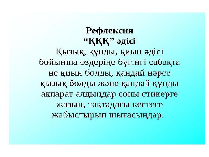Жаңа сөздермен жұмыс •Жаңа сөздермен жай сөйлем құрастыр •Салалас құрмалас сөйлем құрастыр •Сабақтас құрмалас сөйлем құрастыр Мысалы: 1. Жай сөйлем Үлкен қала адамдарды ортақ мақсатқа біріктіреді. 2. Салалас құрмалас сөйлем Ол уақытын босқа өткізбеуге тырысты, енді оның еңбегі жанғалы тұр. (Екі жай сөйлем өзара тең дәрежеде байланысып тұр). 3. Сабақтас құрмалас сөйлем Егер екі жақ ортақ шарт бойынша біріксе, халықтың несібесі молая түседі. (Бірінші сөйлем екіншісіне бағынып, шартты мағына беріп тұр).