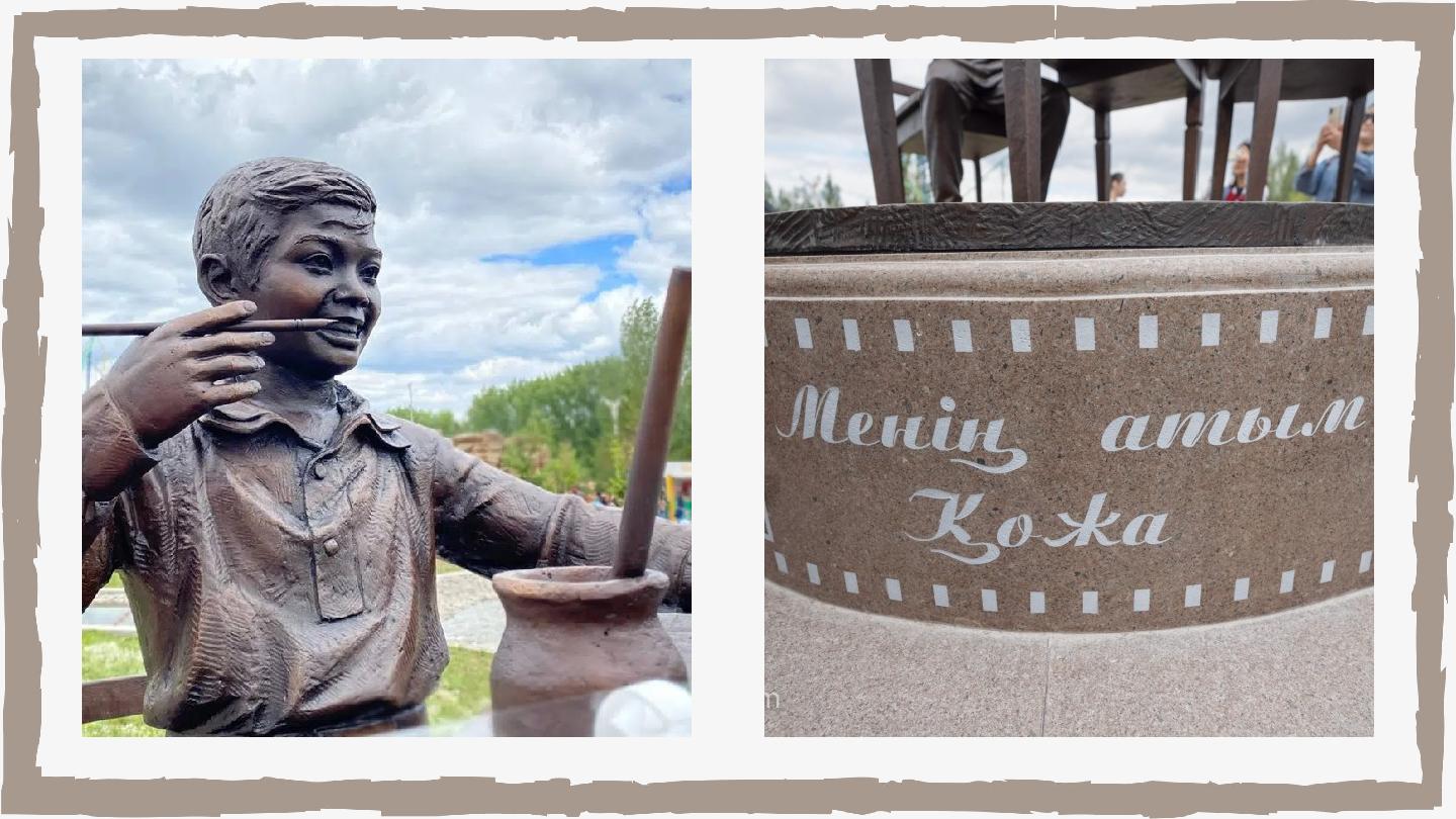 «МЕНІҢ АТЫМ ҚОЖА» ЕСКЕРТКІШІ 2022 жыл 1 маусым Астана қаласында «Менің атым Қожа» фильмінің басты кейіпкеріне арналған ескерткіш ашылды. Ескерткіш қоладан, ал тұғыры граниттен жасалған. Ескерткіштің биіктігі – 183 см. Композиция авторы – мүсінші Азамат Талапхан. Идея авторы – Мұрат Қожамқұлов