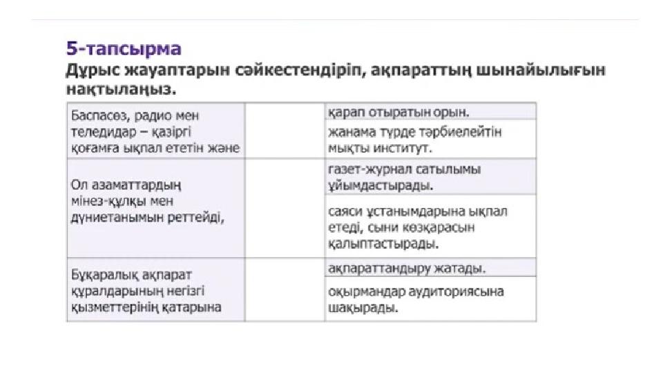 Бұқаралық ақпарат құралдары 9 сынып ҚМЖ