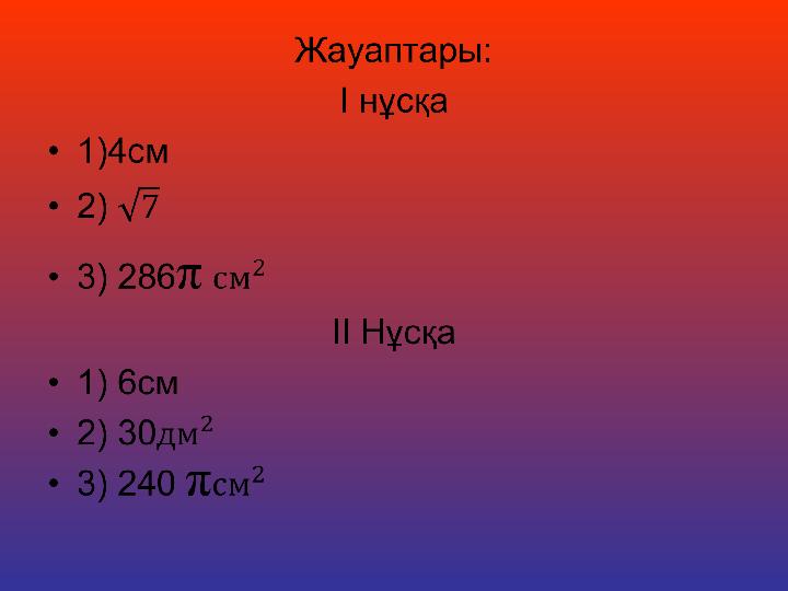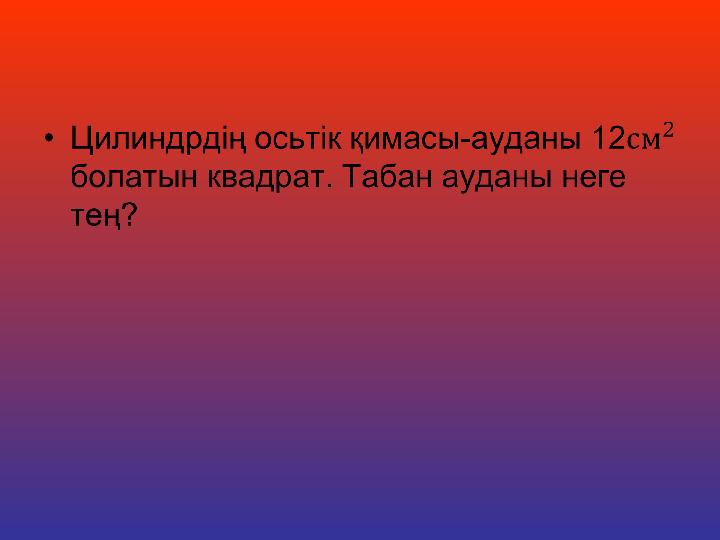Цилиндр тақырыбына есептер шығару