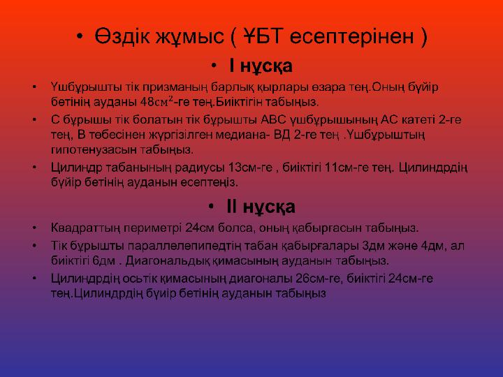 •8 Үйге тапсырм