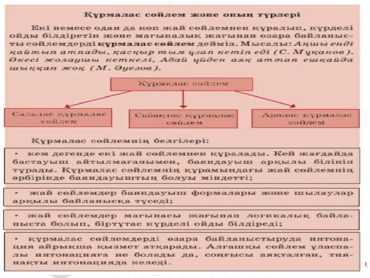 Мақсаты: •9.4.4.1 құрмалас сөйлем жасалу жолдарын, түрлерін білу