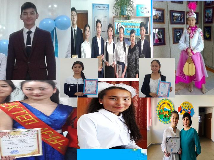 Қазақ тілі және әдебиет пәндері бойынша жоғары деңгейдегі, қабілетті оқушылардың тізімі 2017-2018,2018- 2019, 2019- 2020 ж Уақыты Оқушылардың аты-жөні Қабілеттігі Жетістігі 2016- 2017 ж Иманбетова Әсел Оқуға деген ынтасы өте жоғары, ынталы, оқу озаты «Мектепішілік « Мұқағали оқулары байқау І орын, Аудан « Мұқағали оқулары байқау Бас жүлде, облыстық « Мұқағали оқулары байқау Алғыс хат Уақыты Оқушылардың аты-жөні Қабілеттігі Жетістігі 2018- 2019 ж Әбілқайыр Жанат Оқуға деген ынтасы өте жоғары, ынталы, оқу озаты «Мектепішілік « Мұқағали оқулары байқау І орын, Аудан « Мұқағали оқулары байқау 2-орын. «Жас ғалым»республ. Ғылыми жұмыстар конкурсы 2- орын Уақыты Оқушылардың аты-жөні Қабілеттігі Жетістігі 2019- 2020 ж Аманжолова Сымбат Оқуға деген ынтасы өте жоғары, ынталы, оқу озаты «Мектепішілік « Мұқағали оқулары байқау І орын, Аудан « Мұқағали оқулары байқау Бас жүлде Уақыты Оқушылардың аты-жөні Қабілеттігі Жетістігі 2019- 2020 ж Үйсін Әлия Оқуға деген ынтасы өте жоғары, ынталы, оқу озаты Мектепішілік «Абай оқулары байқау І орын, Аудан «Дарын» ғылыми жобалар конкурсы Бас жүлде Облыстық«Дарын» ғылыми жобалар конкурсы 3- орын,