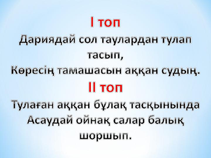 Бес жолды өлең 1.Зат есім. Кім? Не? 2.Сын есім. Қандай? 3.Етістік. Не істейді? 4.Сөйлем. 5.Синоним.