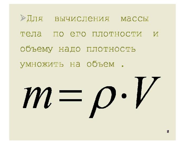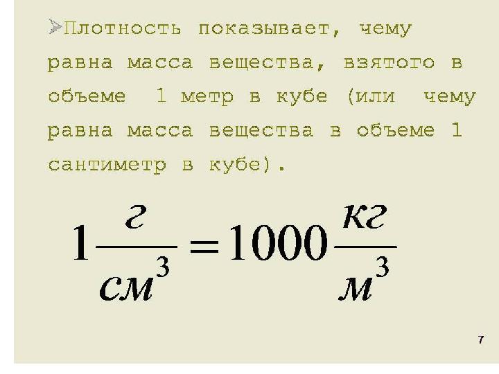 Зат тығыздығы Заттың көлем бірлігіндегі массасына тең шама