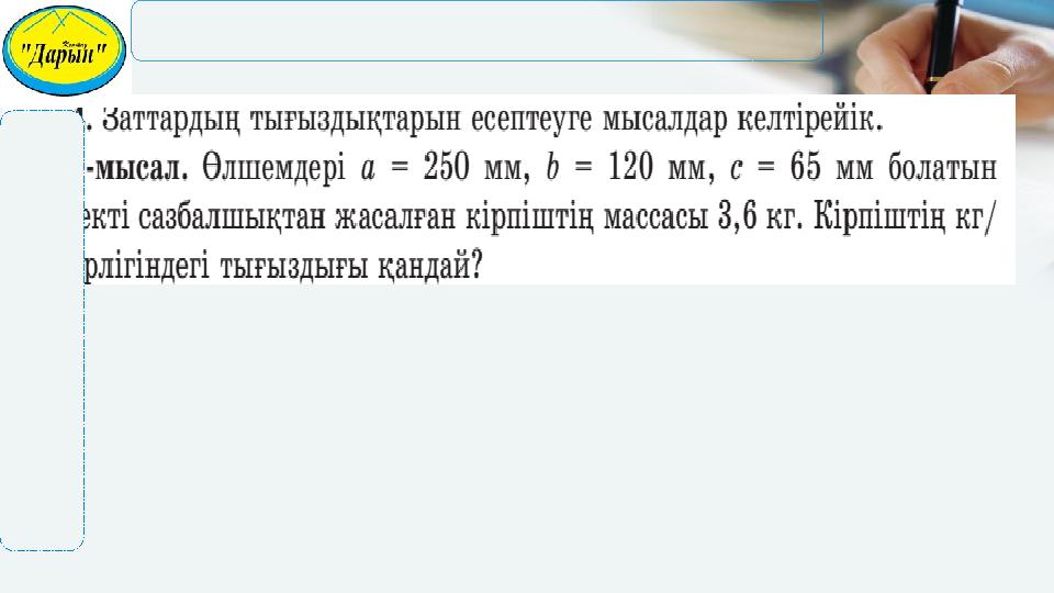 5.Массасы мен тығыздығы бойынша дененің көлемін