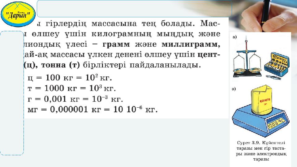 •Қандай да бiр дененiң массасын өлшеу үшiн оны