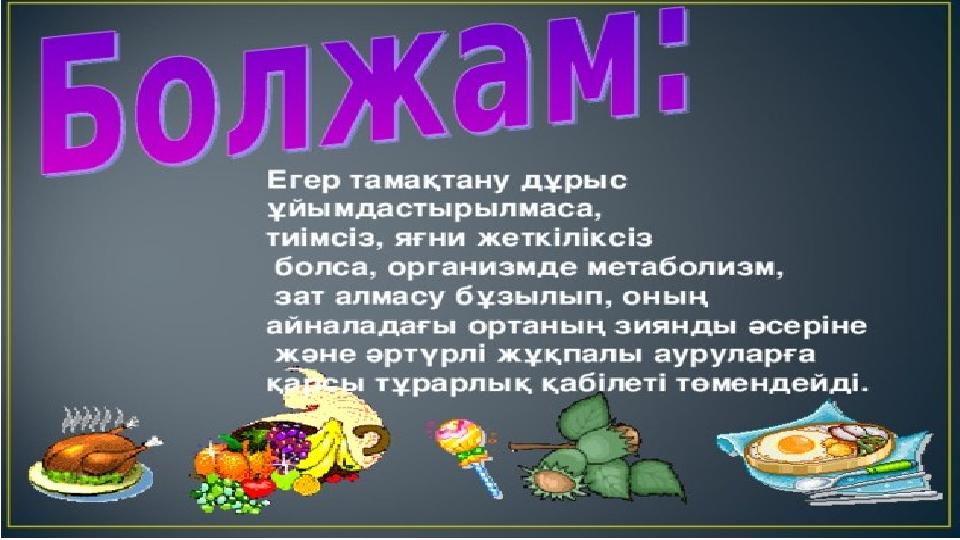Денсаулық және дұрыс тамақтану мәдениеті. слайд
