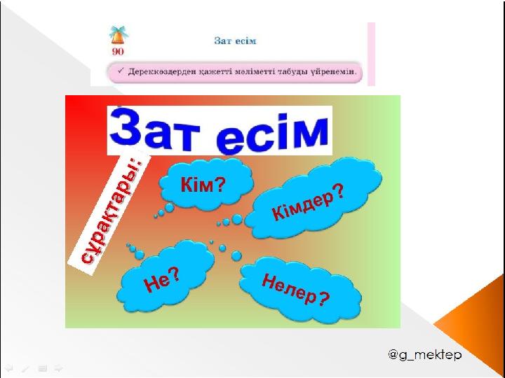 8-705-423-0199 Осы сабақта Сен -Зат есімдерді табуды, оларға сұрақ қоюды үйрендің