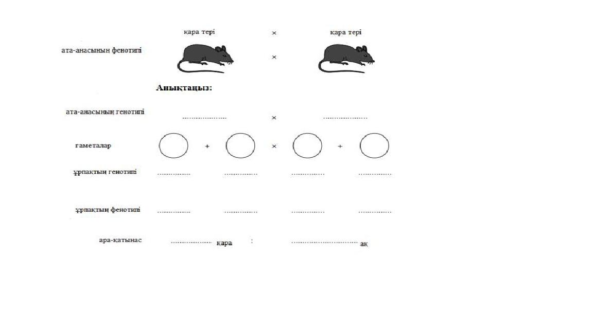 Төменде гомозиготалы қара мен ақ тышқандарды будандастыру сызбасы берілген.