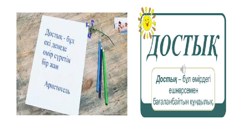 Суреттерге сай келетін достық тақырыбындағы мақал-мәтел айтып, сабақты қорытыңыз Досы көпті жау алмайды 100 теңгең болғанша, 100 досың болсын Достық-алынбас қамал Досы жақсының өзі жақсы Сабақ қорытылады.