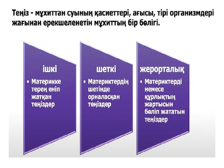 Оқу мақсаты: Дүниежүзілік мұхиттың құрамын, географиялық жағдайын сипаттайды Мұхит және оның құрамдас бөліктерін жоспар бойынша сипаттайды