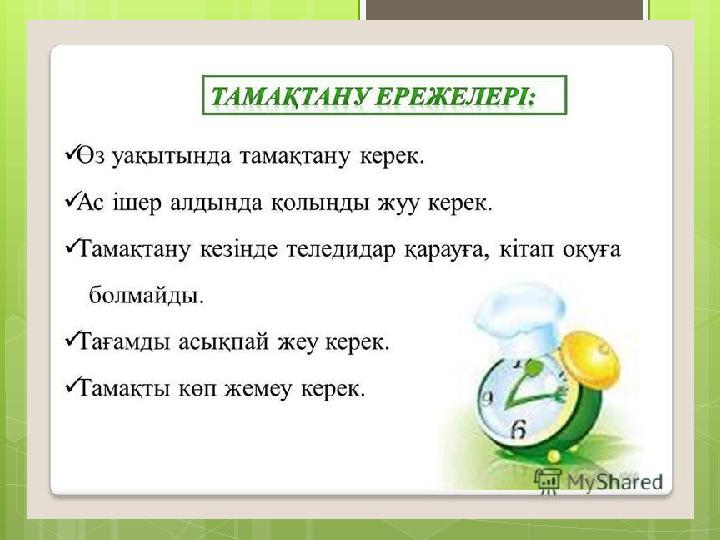 Дұрыс тамақтану денсаулық кепілі тәрбие сағат ҚМЖ