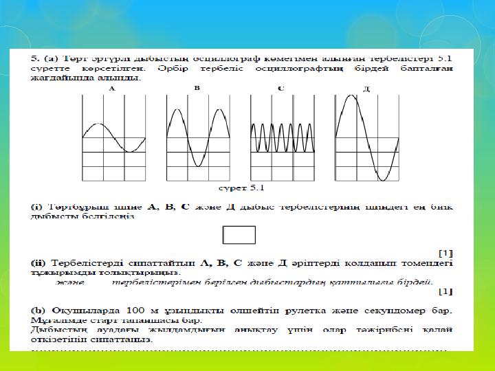 9.2.5.19 - дыбыс толқындарының табиғатын сипаттау;