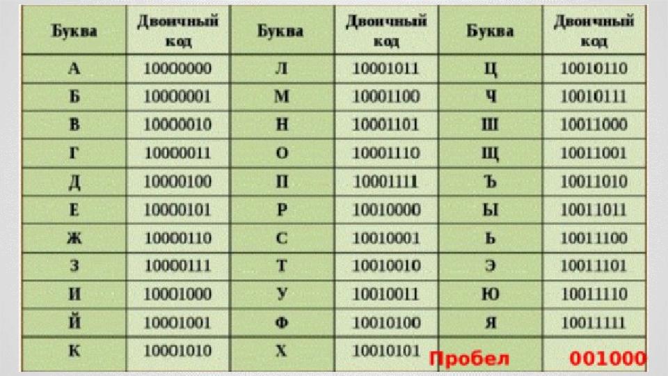 арқылы ақпаратты ұсыну. Екілік кодта «0» жəне