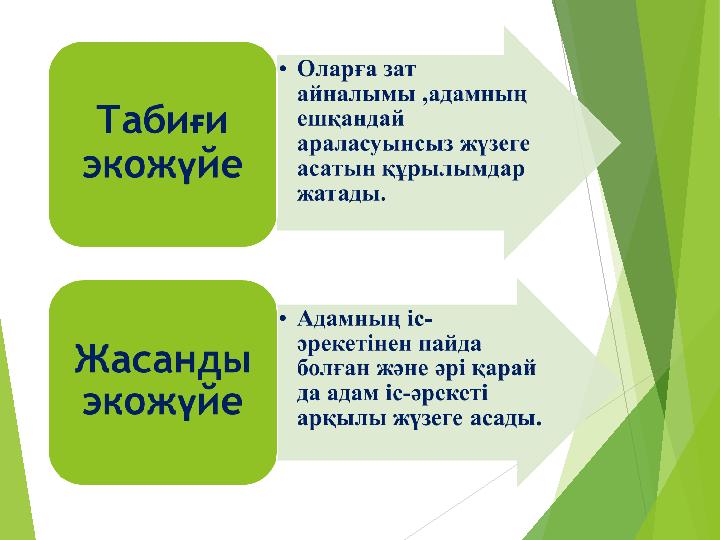 Экожүйенің қандай түрлері бар? Сабақтың мақсаты 5.6.1.1- экожүйенің құрамдас бөліктерін анықтау