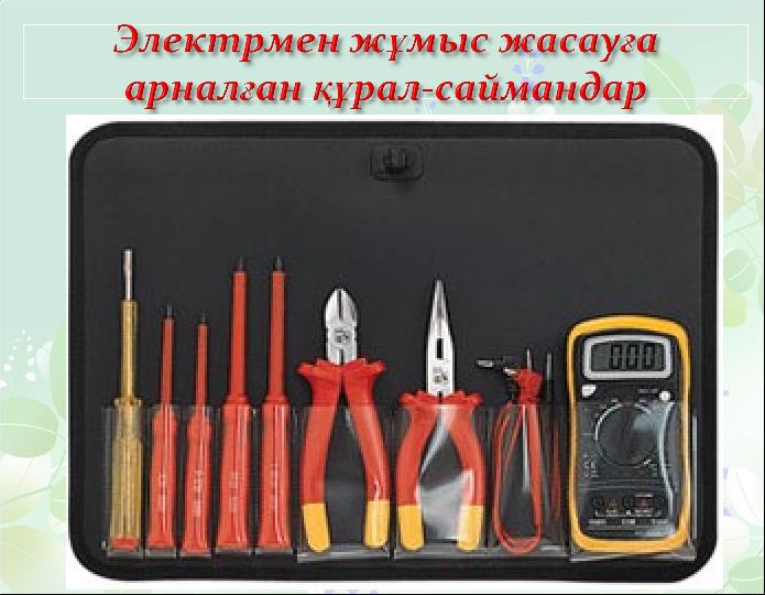Электр аспаптарының қатарына тістеуік, монтер пышағы, қысқаш,