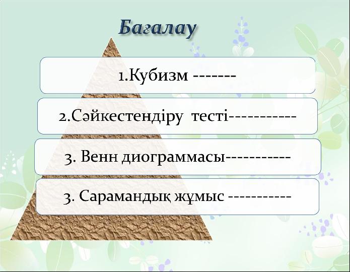 Сабақтың Көрнекіліг і: Электр аша, патрон, ажыратқыш, бұрауыш, тестр, слайд, 1.Оқушыларды қадағалау. 2.Үй тапсырмасын сұрап, бағалау. 3.Теориялық бөлім. 4.Сарамандық бөлім. 5.Бағалау. 6.Үйге тапсырма. Ұйымдастыр у Кезеңі: