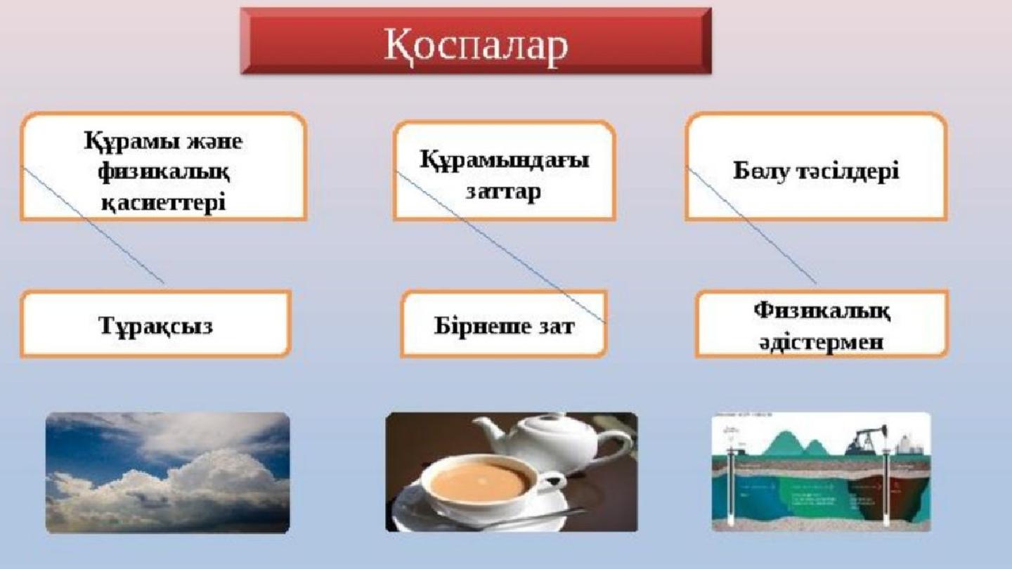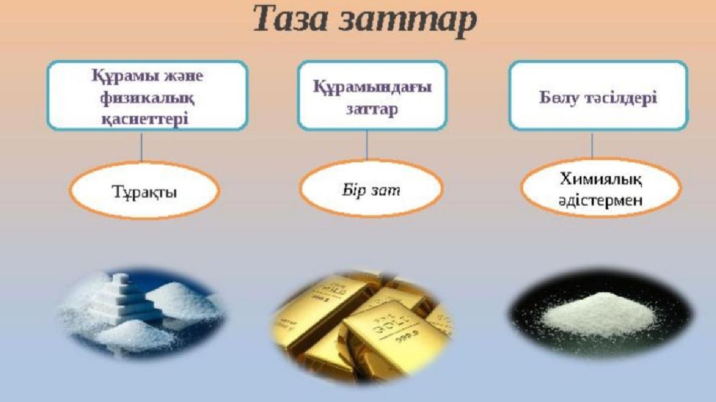 Таза заттар Қоспала р Заттар табиғатт а Дистильденген су Теңіз суы