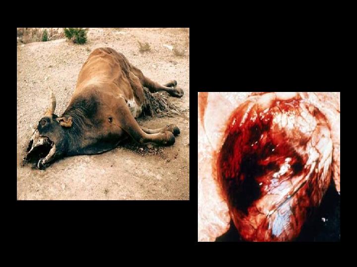 Патологоанатомические признаки Трупы обычно вздуты, но разлагаются медленно. Из носовых отверстий и ротовой полости вытекает пенистая жидкость. Наблюдается разлитая отечность в области задних конечностей (до скакательного сустава), промежности, спины, паха. При вскрытии трупа чувствуется запах прогорклого масла. Подкожная клетчатка в области пораженных мышц пронизана кровоизлияниями и пузырьками газа, в ней выявляют красный или желтый студенистый инфильтрат. Специфическими поражениями являются газовые отеки в мышцах. На разрезе мышцы пористые, сухие, темно- красного, почти черного цвета, при надавливании из них выделяется пенисто-кровянистая жидкость с запахом прогорклого масла. В грудной и брюшной полостях скопление мутноватой жидкости темно-красного или коричневого цвета. Отмечаются различные поражения паренхиматозных органов.