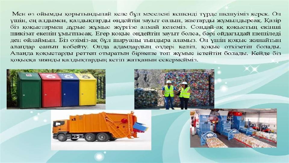 Еңбегі адал жас өрен» жобасы аясында: Қалдықтарды табысқа айналдырайық. презентация
