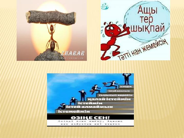 « Еңбек – елдің мұраты», «Құқықтық мәдениет», «Үнем – қоғам қуаты»,