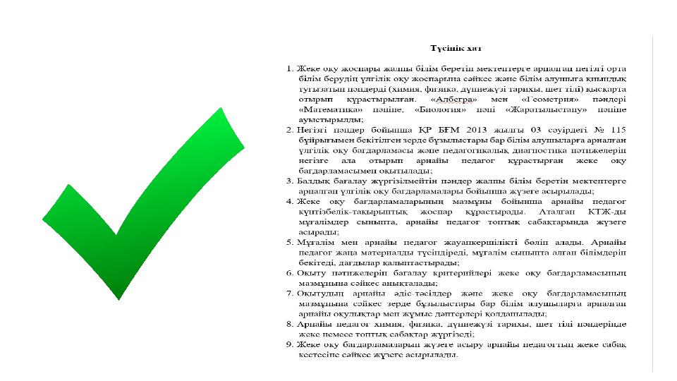 мен жеке оқу бағдарламаларын құрастырылады. Жеке оқу