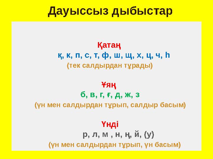 Дауыссыз дыбыстар – 26 (+у)
