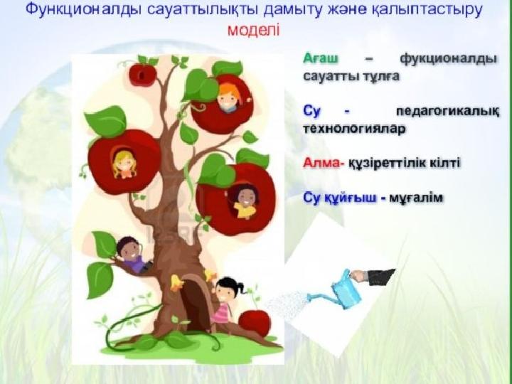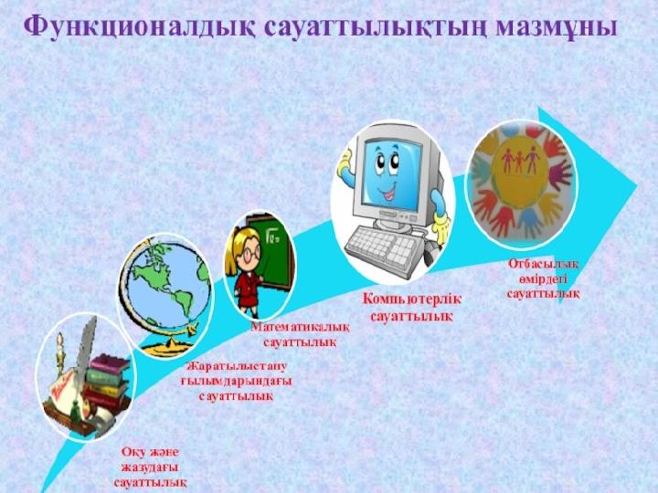 Қорытынды Функционалды сауаттылық дегеніміз жоғарыда айтылған оқушылардың қарапайым санай алатындықтарын өмірде қолдана алуы,пайдасы мен көмегін сезініп,тереңінен меңгеруге ұмтылу.Алған білімдерін қолдана алу сауаттылығы.