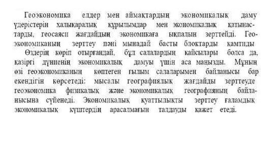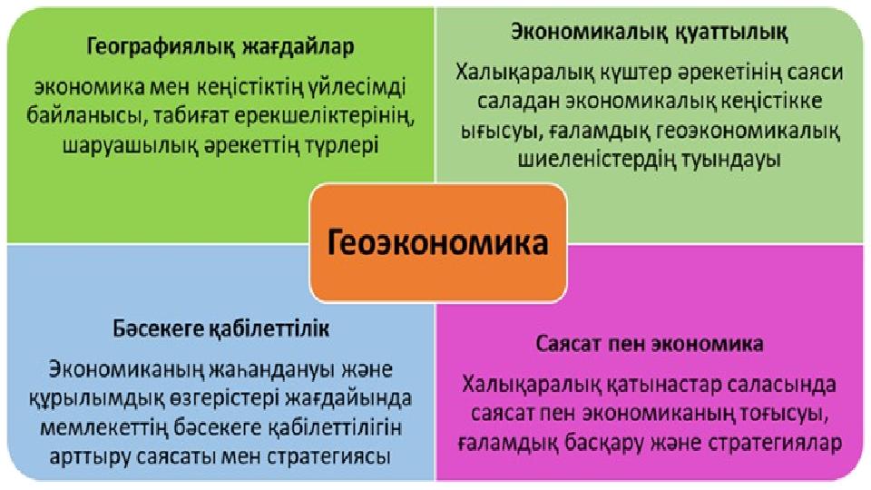жасау.Геоэкономиканың негізгі зерттеу міндеттері оның сан қырлы сипатына