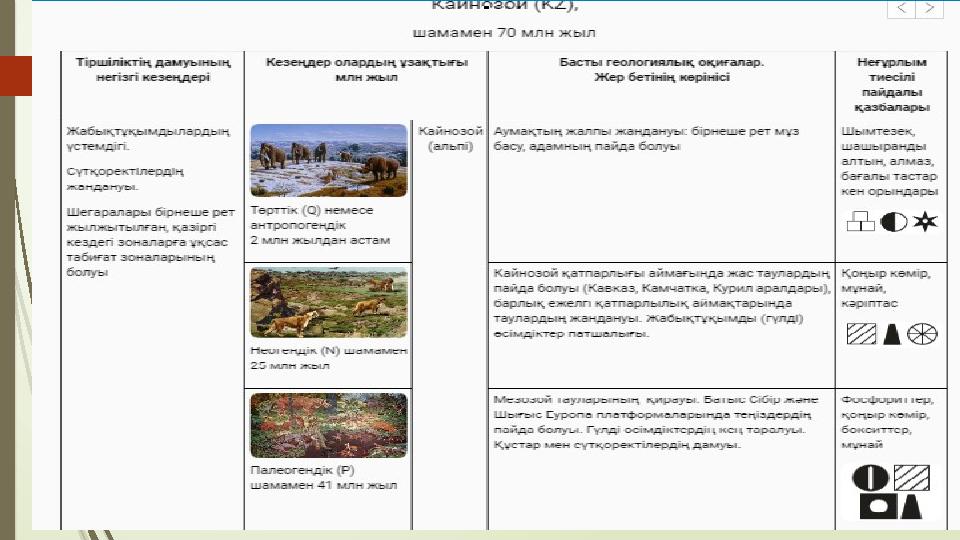 Эра: Кайназой, кезеңдері: палеоген , неоген, антропоген