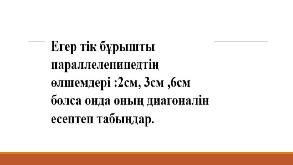 №1. Тік бұрышты параллелепипедтің табанының қабырғаларының
